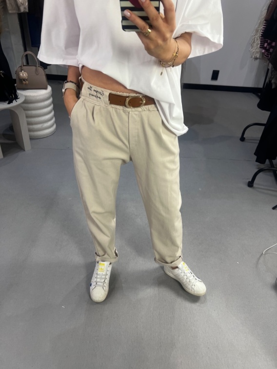 Luźne spodnie bawełniane ze zwężaną nogawką