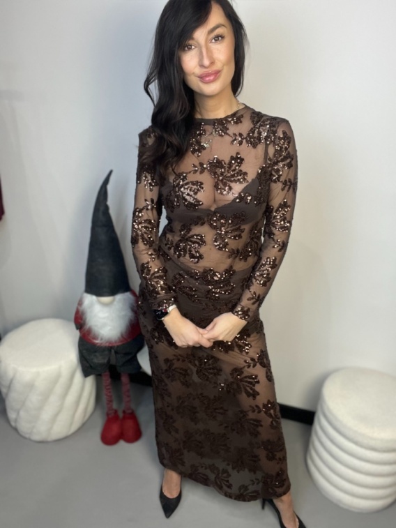 Całość zdobią misternie ułożone wzory z połyskujących cekinów, które nadają spódnicy glamour i sprawiają, że prezentuje się niezwykle elegancko i zjawiskowo. To idealny wybór na imprezy, wieczorne wyjścia czy wyjątkowe okazje, gdy chcesz przyciągać spojrzenia.