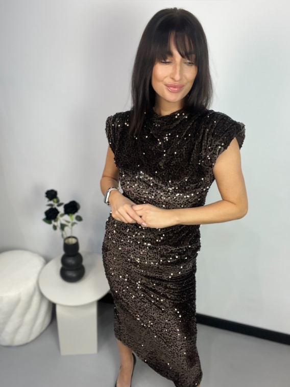 Zmysłowa, elegancka i pełna blasku – ta welurowa bluzka w odcieniu czekolady to prawdziwa perełka wśród wieczorowych stylizacji. Miękki, luksusowy welur pięknie odbija światło, a drobne cekiny dodają całości wyrazistego, glamour efektu.